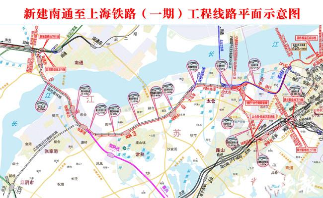 沪苏通铁路是国家 " 八纵八横 " 高铁网沿海通道,也是京沪第二通道的重要组成部分,一期工程北起南通市,从宁启铁路启东赵甸站引出,经南通市通州区,向南经沪苏通长江公铁大桥跨越长江,经苏州张家港、常熟、太仓市,终到上海市嘉定区,全长 143 公里,设计时速 200 公里。