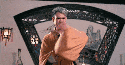 《鬼打鬼》拍于1980年,这时的功夫片已经把传统的“硬汉猛拳出击打坏蛋”模式给玩滥了,观众不爱看了。于是大家各出奇招,有的跳街舞打拳(《情逢敌手》),有的跳楼打拳(《A计划》)、有的吊威亚打拳(《卧虎藏龙》)。