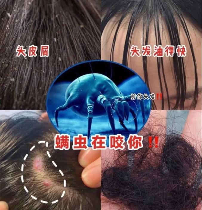 一旦发现有头螨症状头发太油,头屑多,头皮痒,头皮长痘除螨就迫在眉睫!