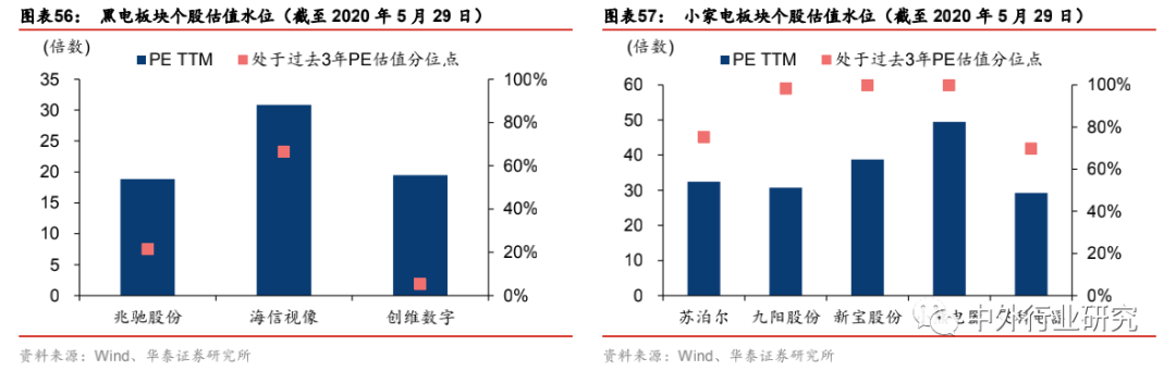 黑电企业PE 估值所处分位数水平差异较明显,行业依然面临激烈竞争态势,盈利能力的不确定性仍将存在。