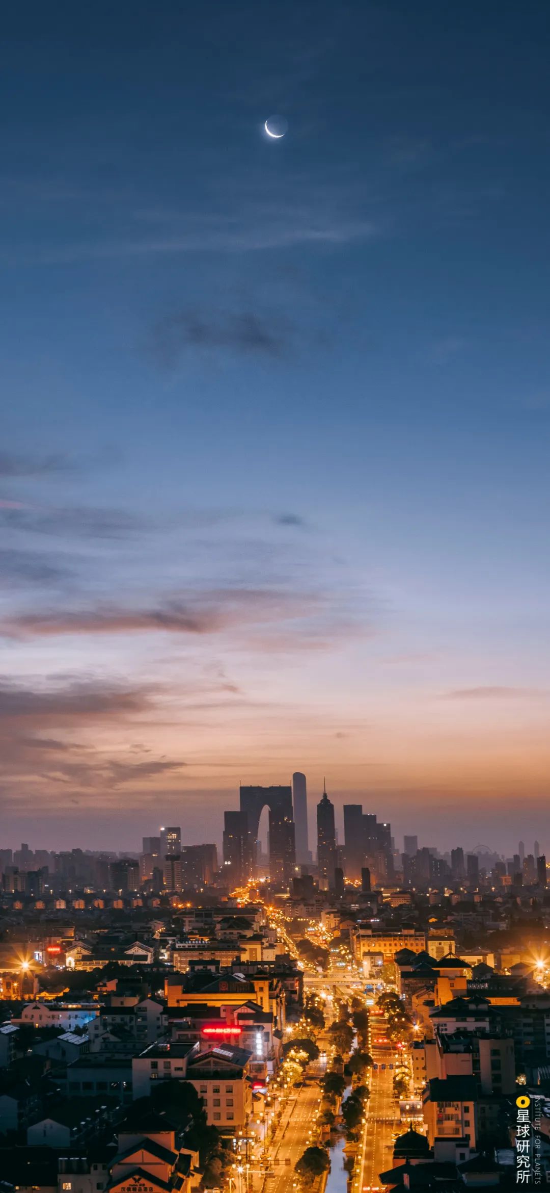 (苏州城市上空的一弯残月,摄影师@张铭琛)