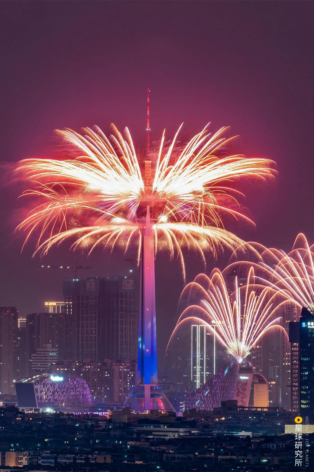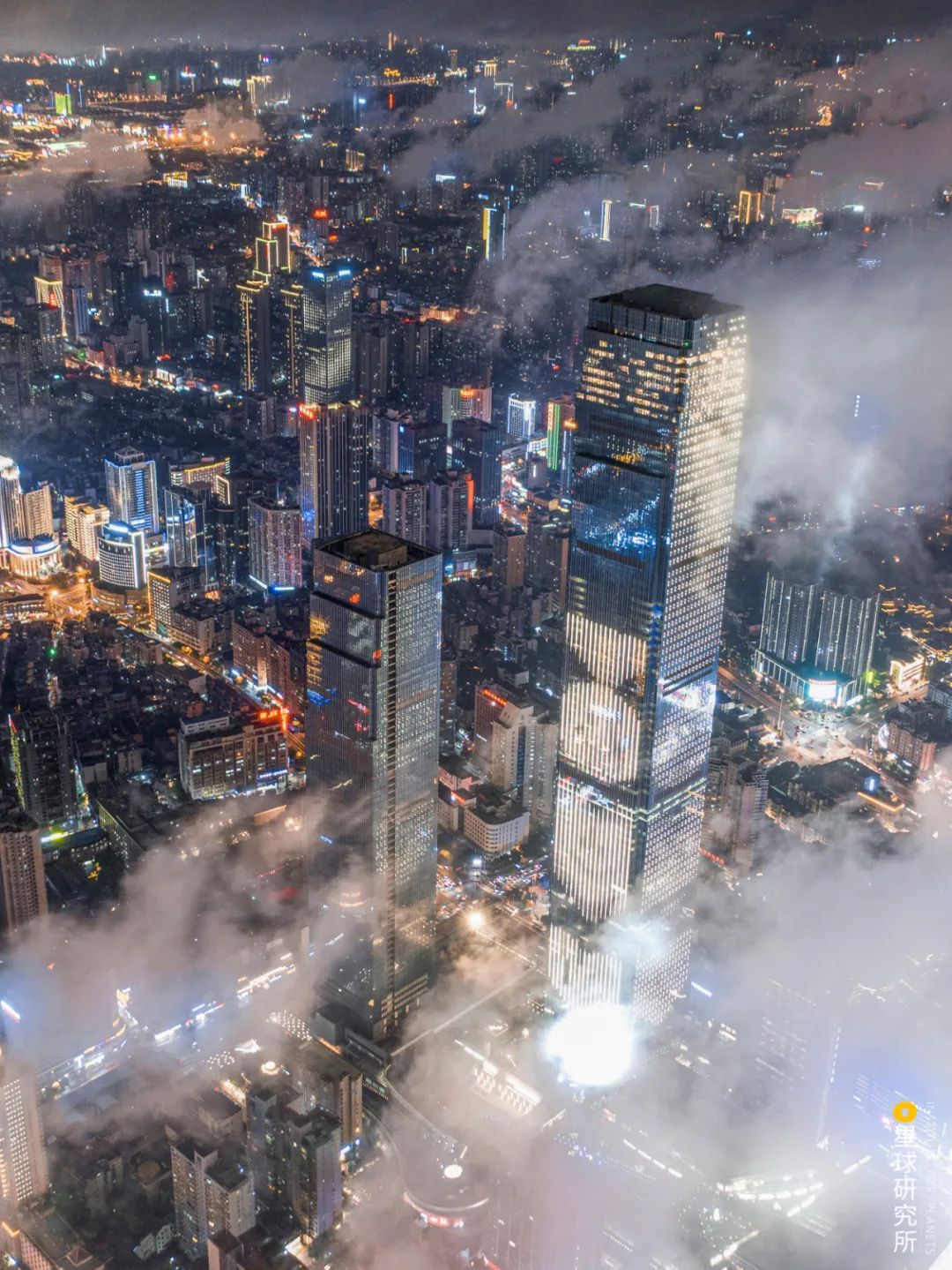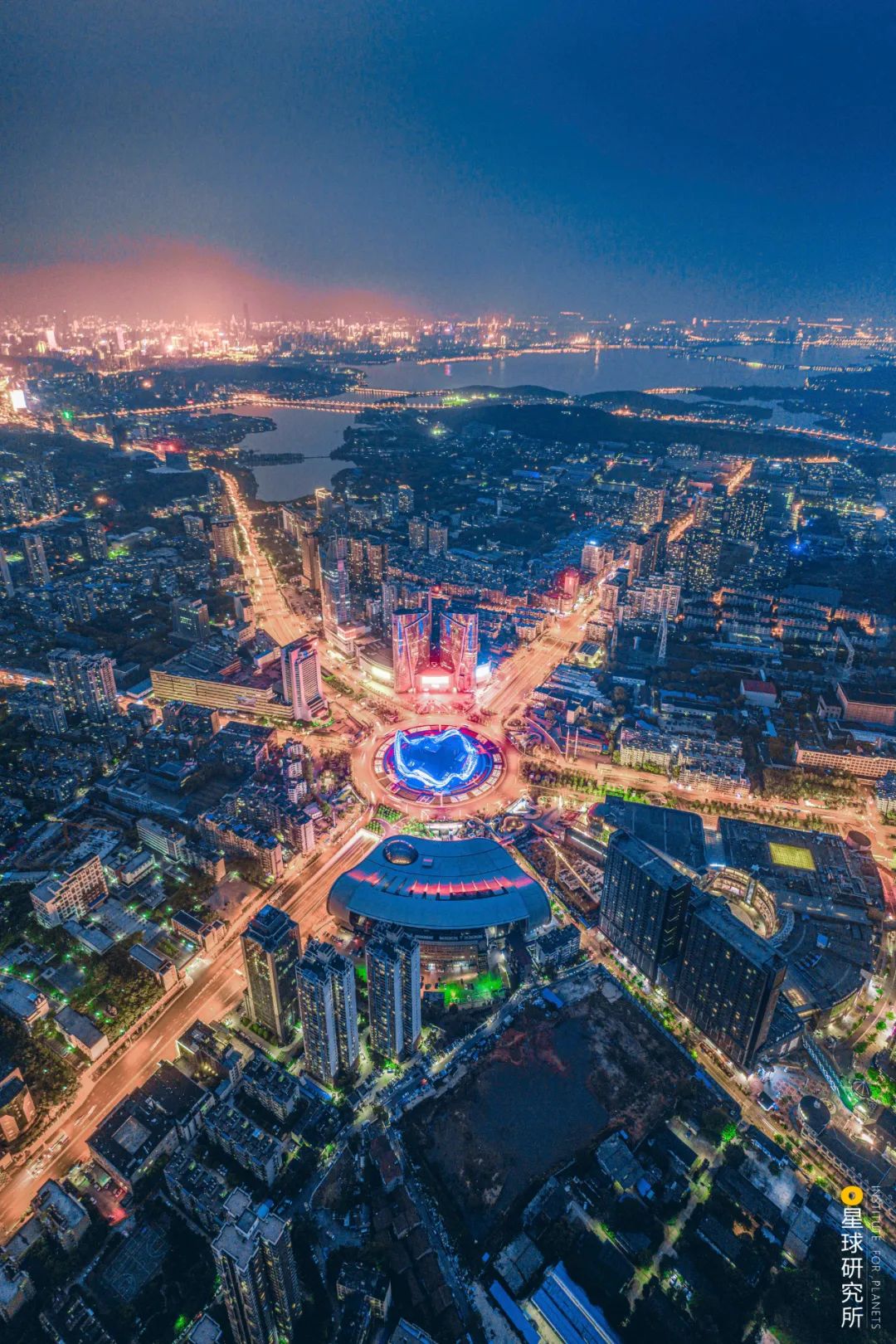 (夜间雨后的湖南长沙市中心,摄影师@朱小马)