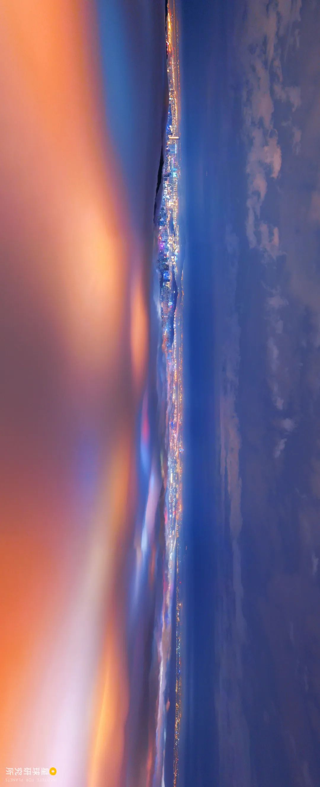 (请横屏观看,夜间的厦门,平流雾覆盖城市,被城市的灯光照亮,摄影师@刘剑聪)