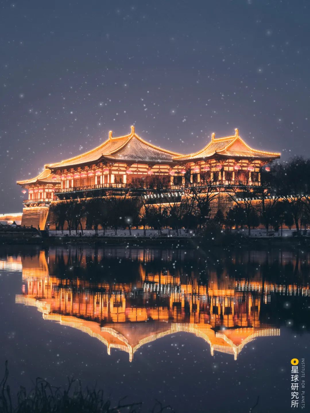 (雪夜中的洛阳市定鼎门,摄影师@杨振豪)