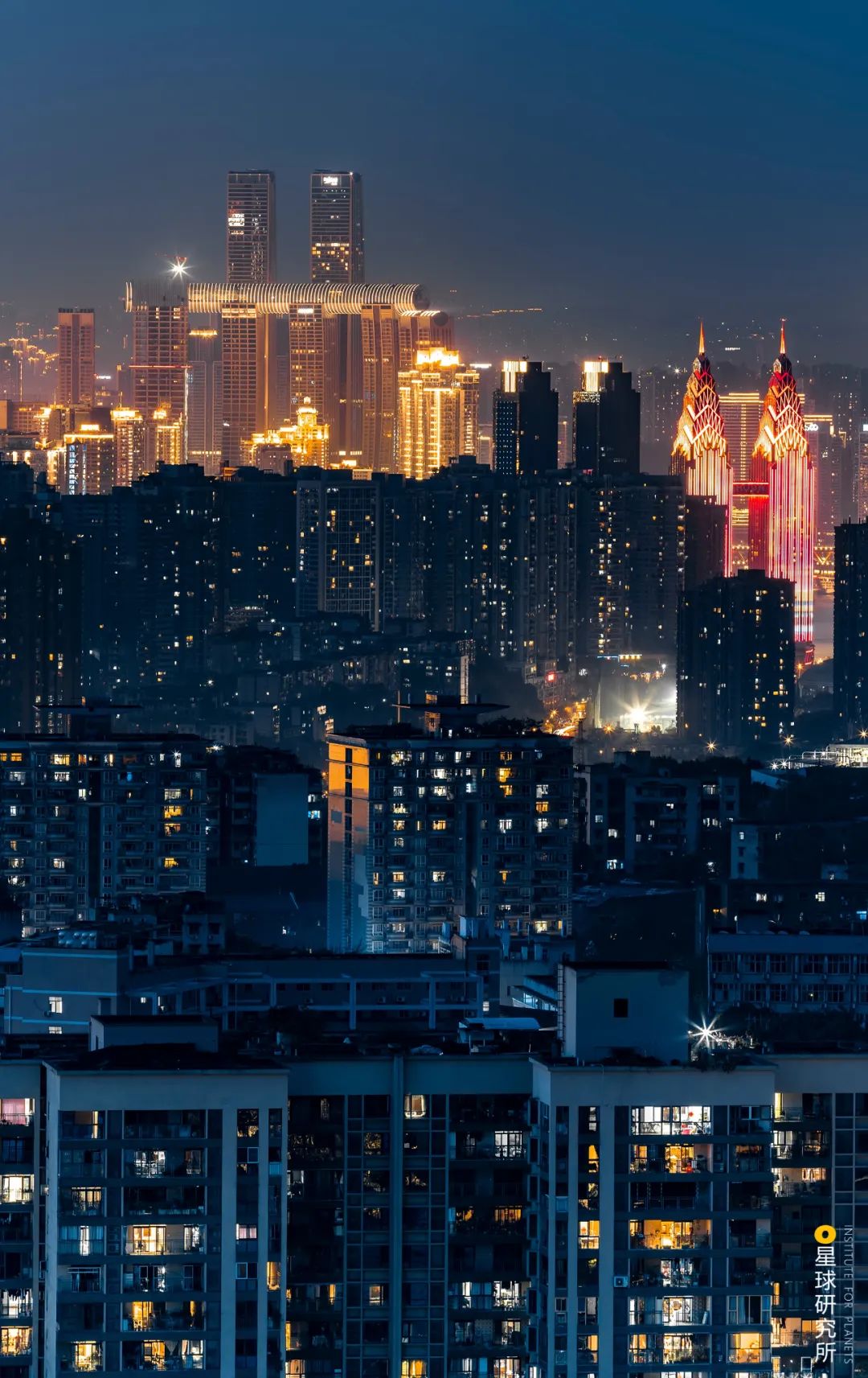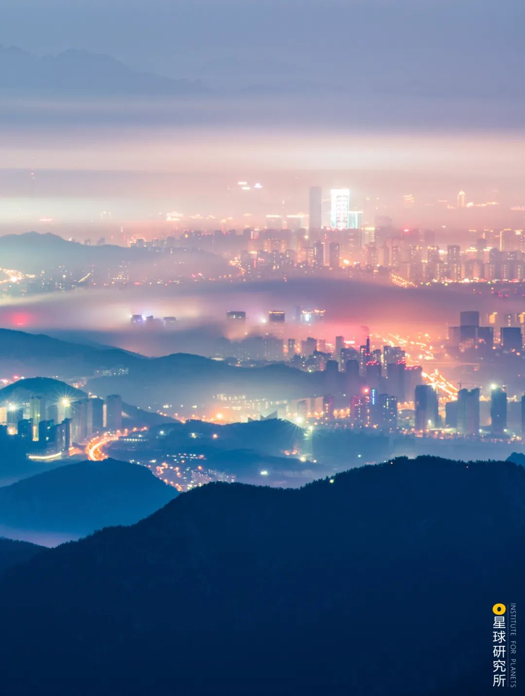 (夜色中的山脉和成都,摄影师@嘉楠)
