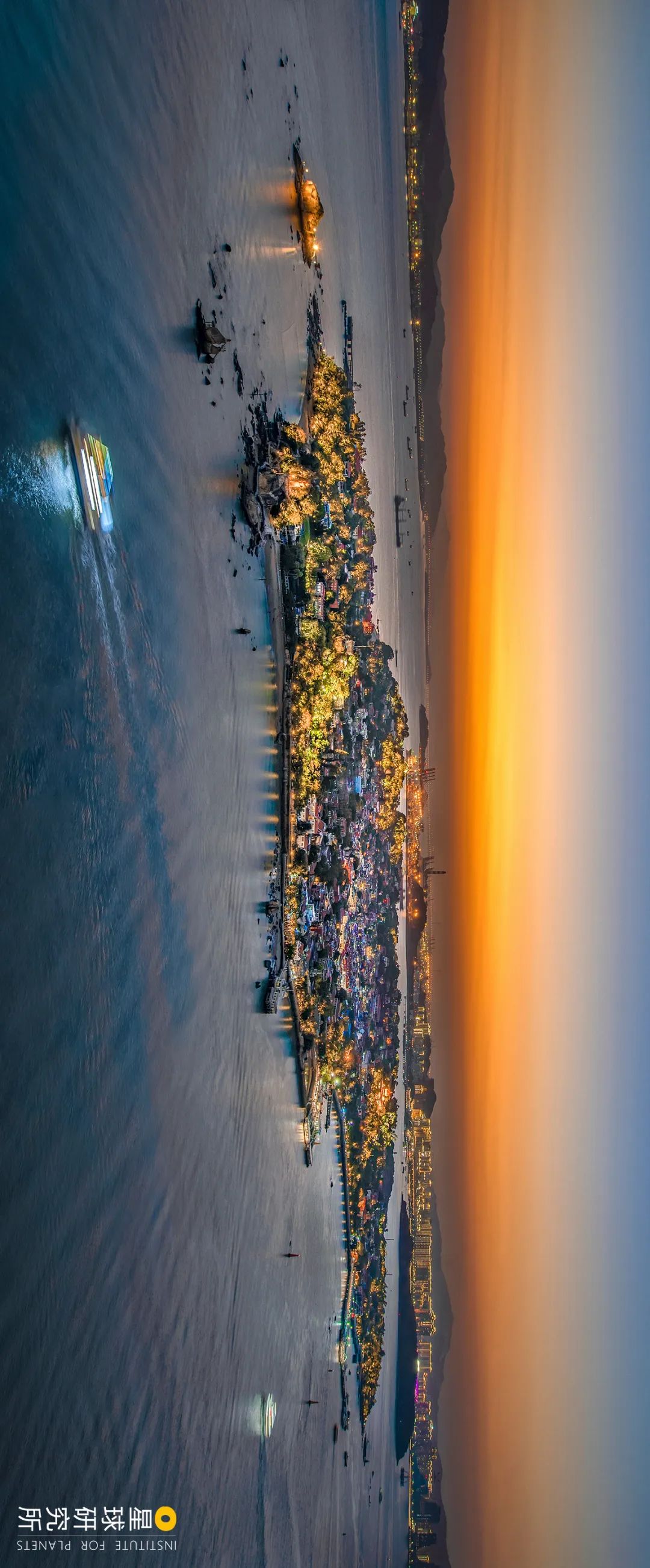(请横屏观看,江西省铅山县河口镇,城镇、信江、武夷山,在夜间交相辉映,摄影师@聂淇)
