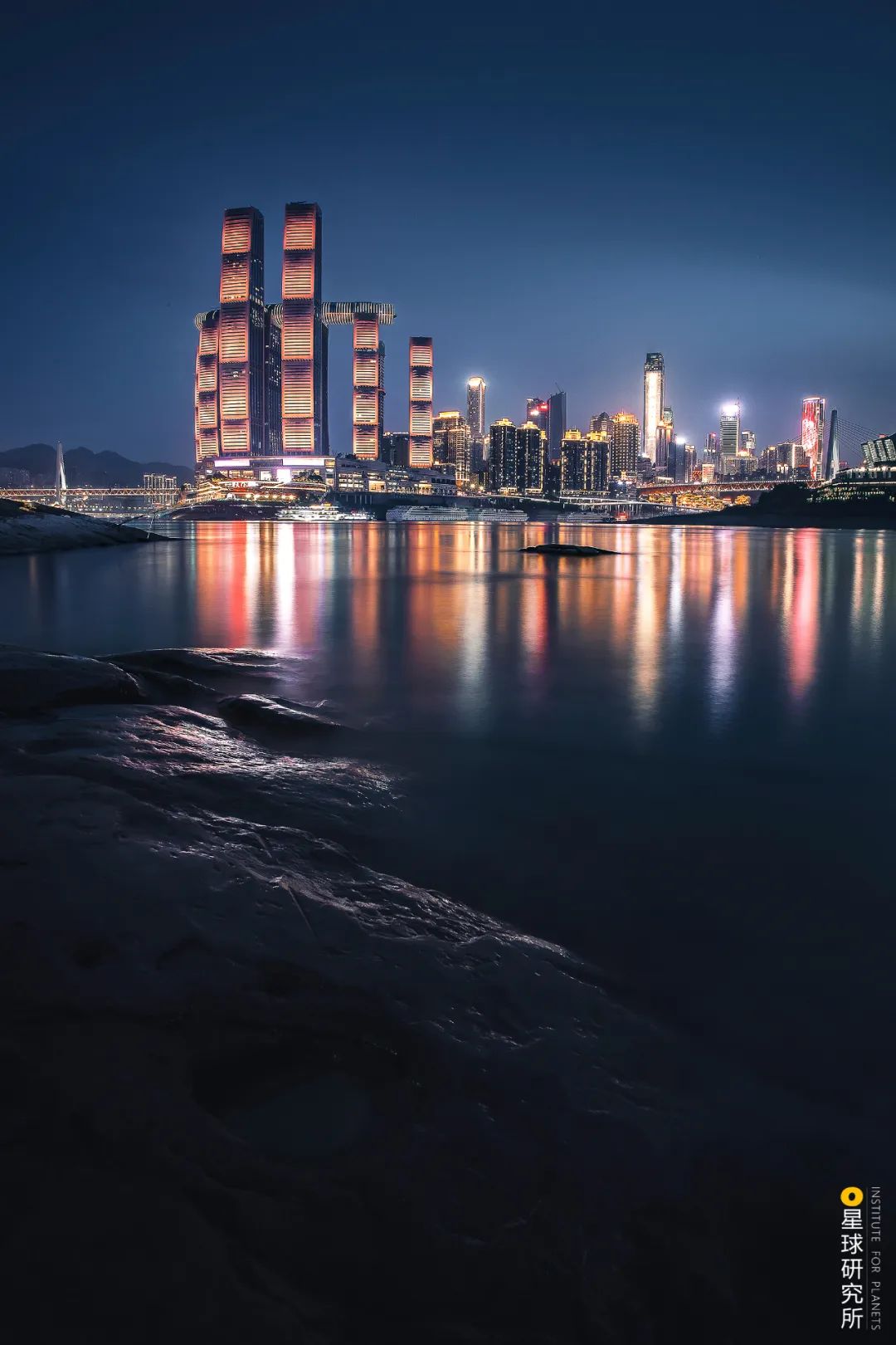 (重庆渝中区朝天门广场的灯光倒映在江水,摄影师@王啸)