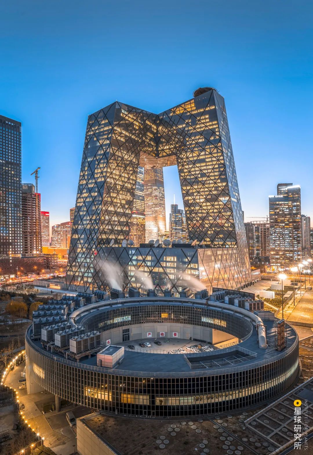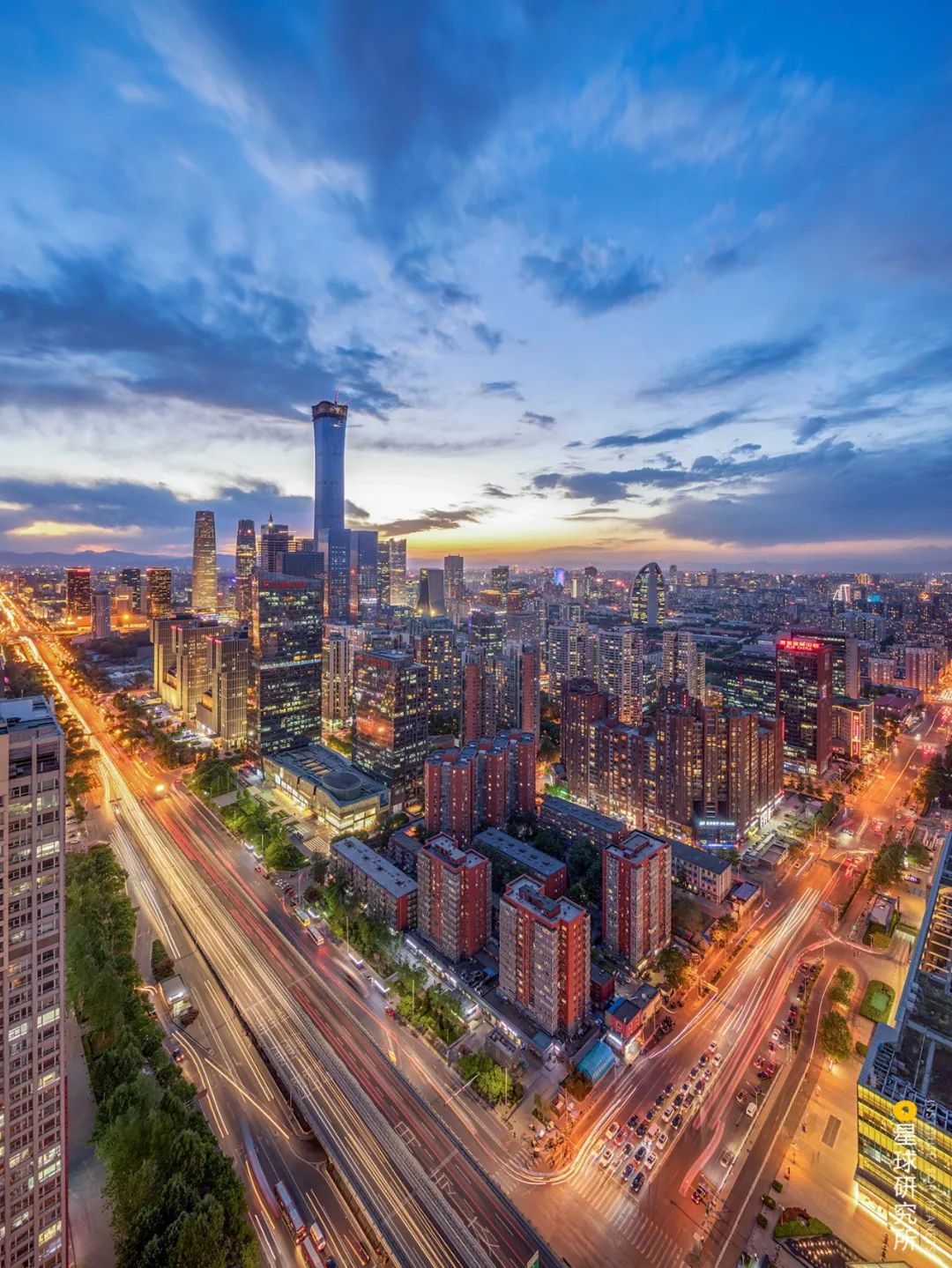 (夜晚的北京城市上空的星轨,摄影师@黄登一)