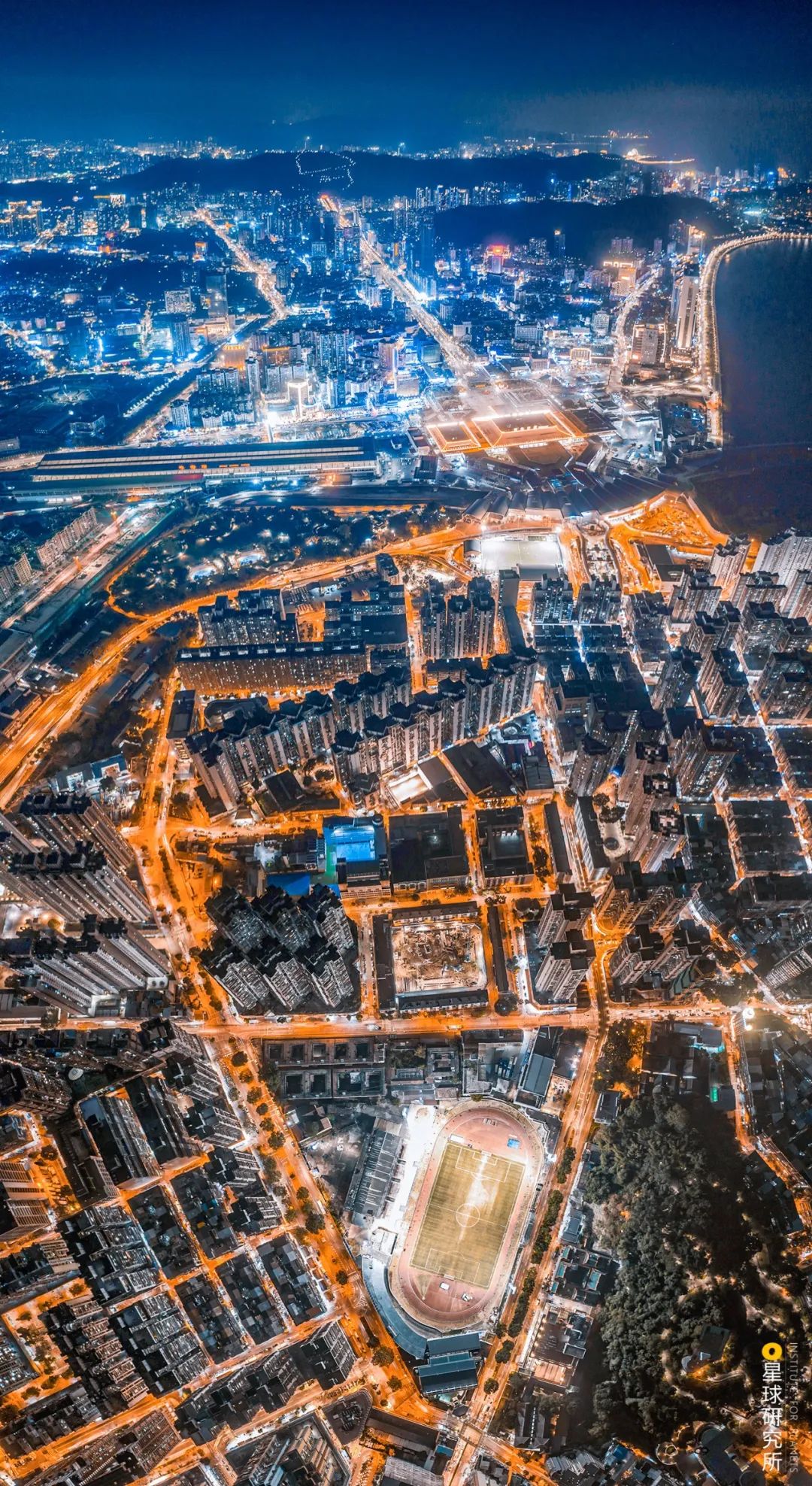 (夜色中的青岛,山脉和城市交错,摄影师@王宁)