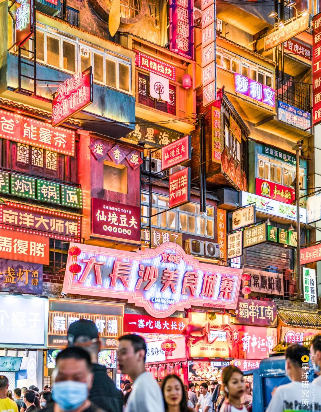 (长沙黄兴路步行街夜晚绚烂的霓虹灯招牌,摄影师@刘众)