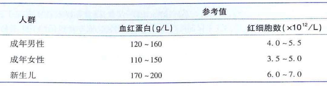 在海平面地区,我国健康人群的血红蛋白和红细胞计数应该在这张表格列出的参考值范围内。如果多次检查,成年男性的血红蛋白(Hb)>165g/L,成年女性的Hb>160g/L,或者成年男性的红细胞比容(HCT,以前也称为血球压积)>49%,成年女性的HCT>48%,就认为有红细胞增多。