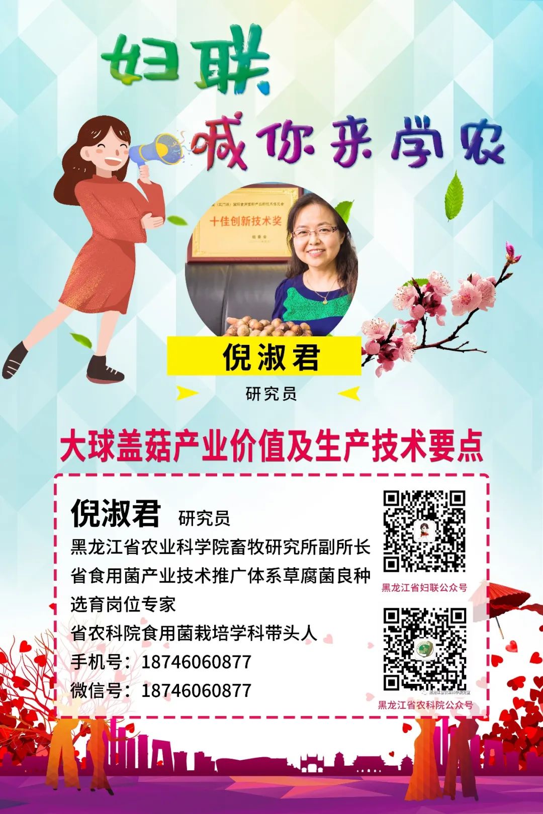 了解大球盖菇的烹饪方法后,有没有让你食欲大增?有没有让你看到了种植大球盖菇的前景?为指导大家更科学的发展种植业,省妇联邀请省食用菌产业技术推广体系草腐菌良种选育岗位专家——倪淑君,做客“龙江女性”,为大家带来一堂别开生面的线上助农课《大球盖菇产业价值及生产技术要点》