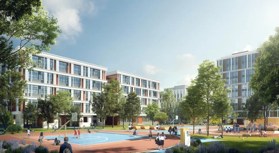 西安高新一中实验中学(西安高新一中新校区)建筑分布采用院落式布局,轴线分明、植入人文环保理念,景观设计新颖流畅,2800平的图书馆、理化实验室、计算机教室、舞蹈教室、音乐教室、美术教室以及各类特色部室一应俱全。设计中还充分考虑科技创新、人工智能领域发展、审美情趣培养、体能发展等方面教育需求,配套13间创客教室、8泳道标准游泳馆、音乐厅等。