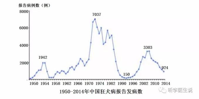 20 世纪 50 年代以来,我国人间狂犬病先后出现了 3 次流行高峰。1981 年全国狂犬病报告死亡 7037 人,为新中国成立以来报告死亡数最高的年份。