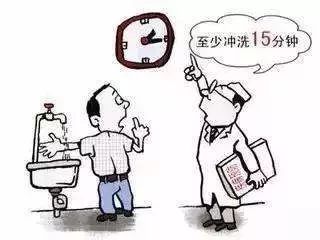 ①伤口冲洗:用肥皂水(或其他弱碱性清洗剂)和一定压力的流动清水交替清洗每处伤口至少 15 分钟。然后用生理盐水冲洗伤口。