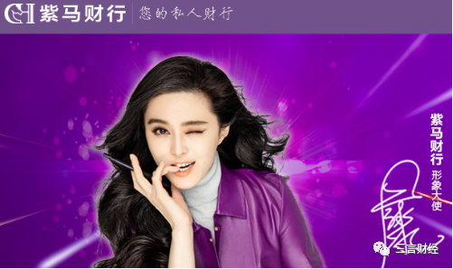 2015年,范冰冰担任紫马财行形象大使。
