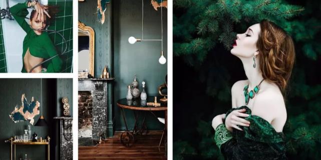 在所有色彩的组合中,墨绿色搭配棕色是最自然的,因为这就是树的颜色呀,来自大自然的配色总不会错。墨绿色有自然的气息,棕色又能给人沉静的氛围,明度与纯度统一的两种色彩,放在一起产生奇妙的反应,是经典的存在。