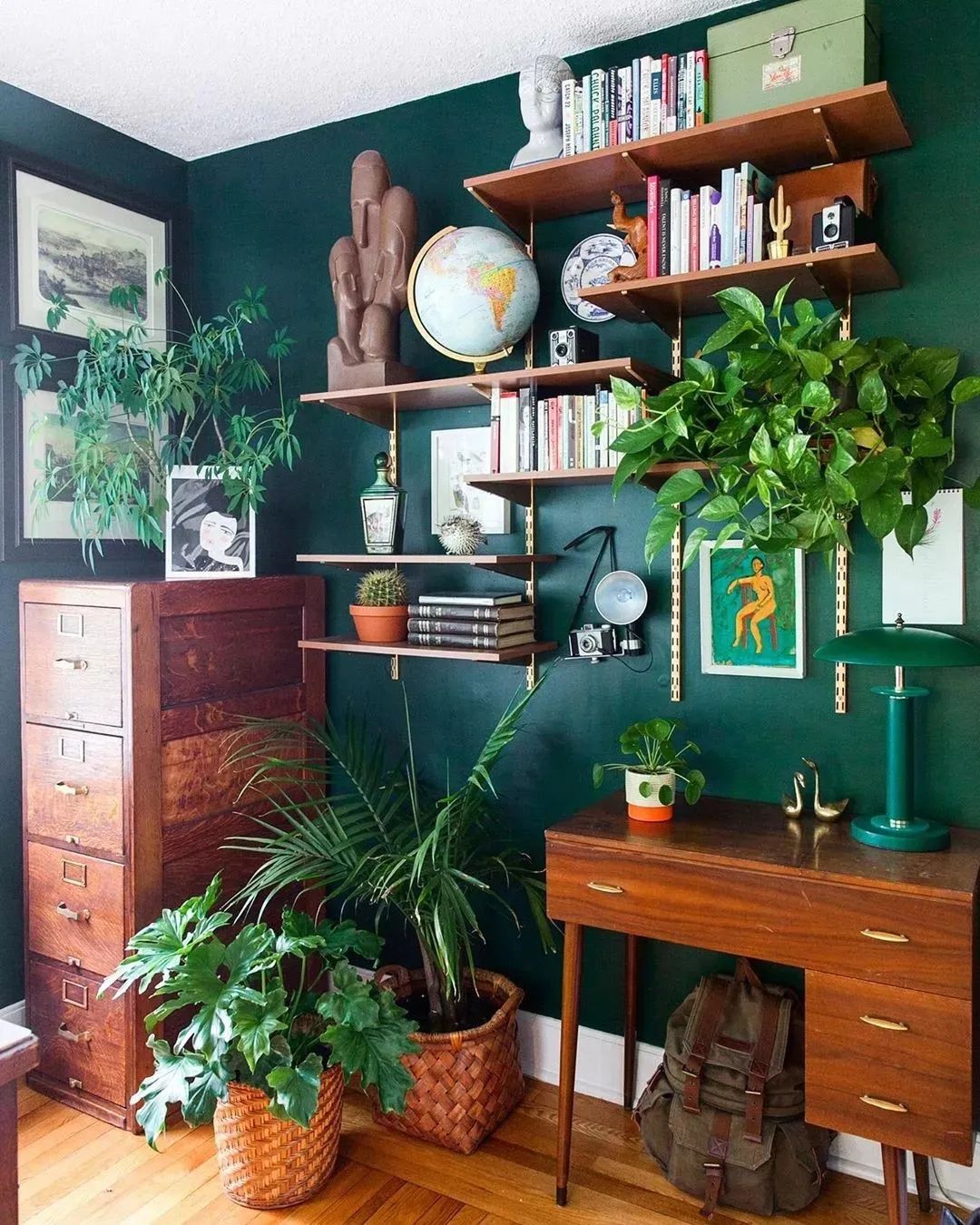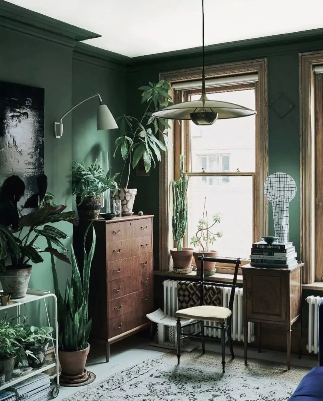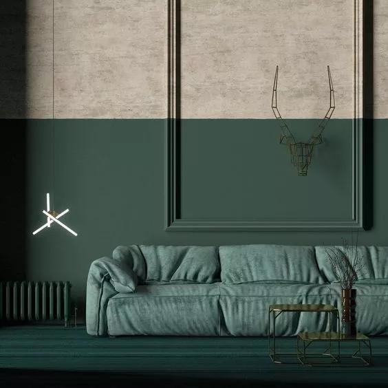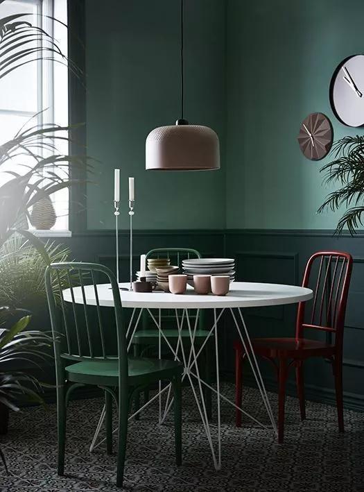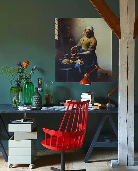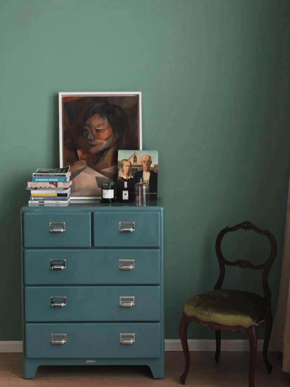 墨绿色的墙面,有点翠翠的感觉,像宝石,高贵典雅,百看不厌。