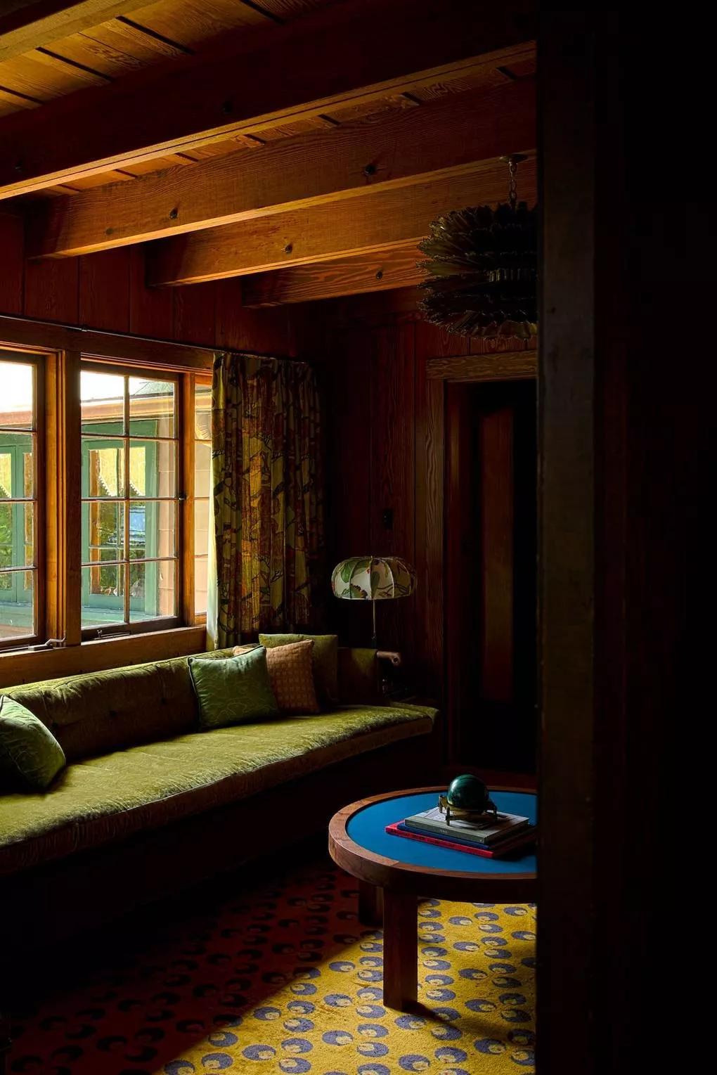 还有好莱坞公主安妮·海瑟薇,她和丈夫亚当·舒尔曼在南加州买了一处别墅,既梦幻又温馨。房间中多处配色灵感来自韦斯·安德森的电影,比如阅读室中的大面积暖黄色加上绿色的沙发,其天鹅绒材质充满了复古感。▼