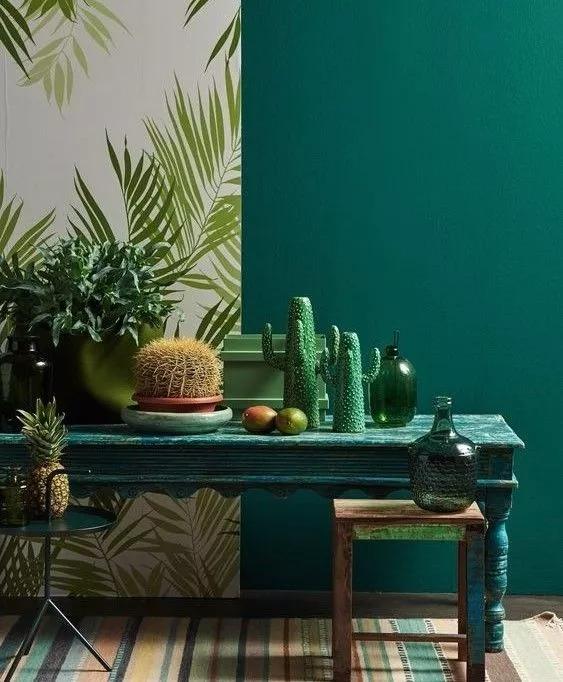 同色系的绿色单品搭配,会打造出空间的层次感,也避免了使用单一色彩的单调感。