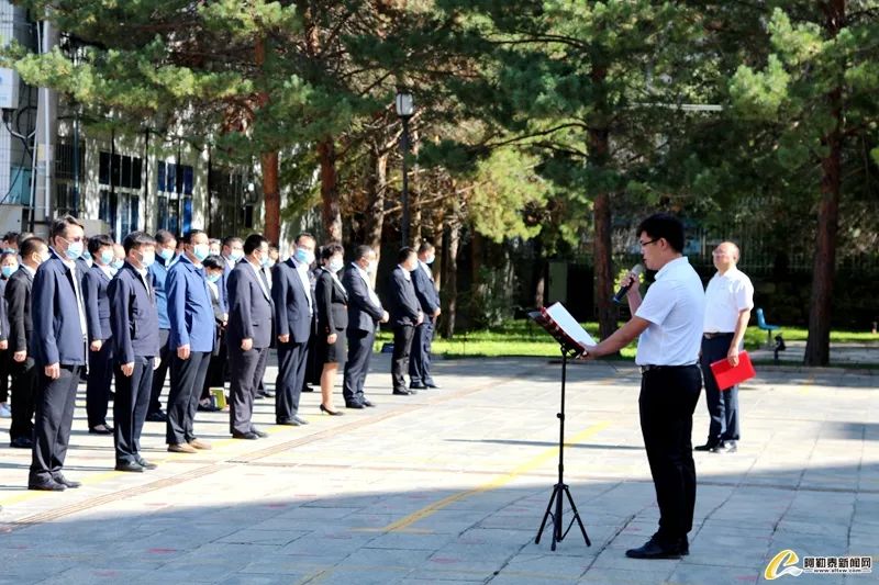 在政府广场,青河县四套班子在家领导、党员干部参加升国旗仪式。县委组织部相关负责人进行了以《坚定理想信仰,永葆忠诚底色,坚决扛起共产党人的使命担当》为题的宣讲。