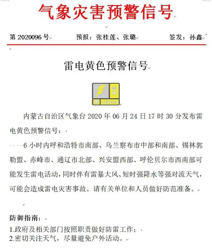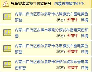 发布67条雷电、暴雨预警