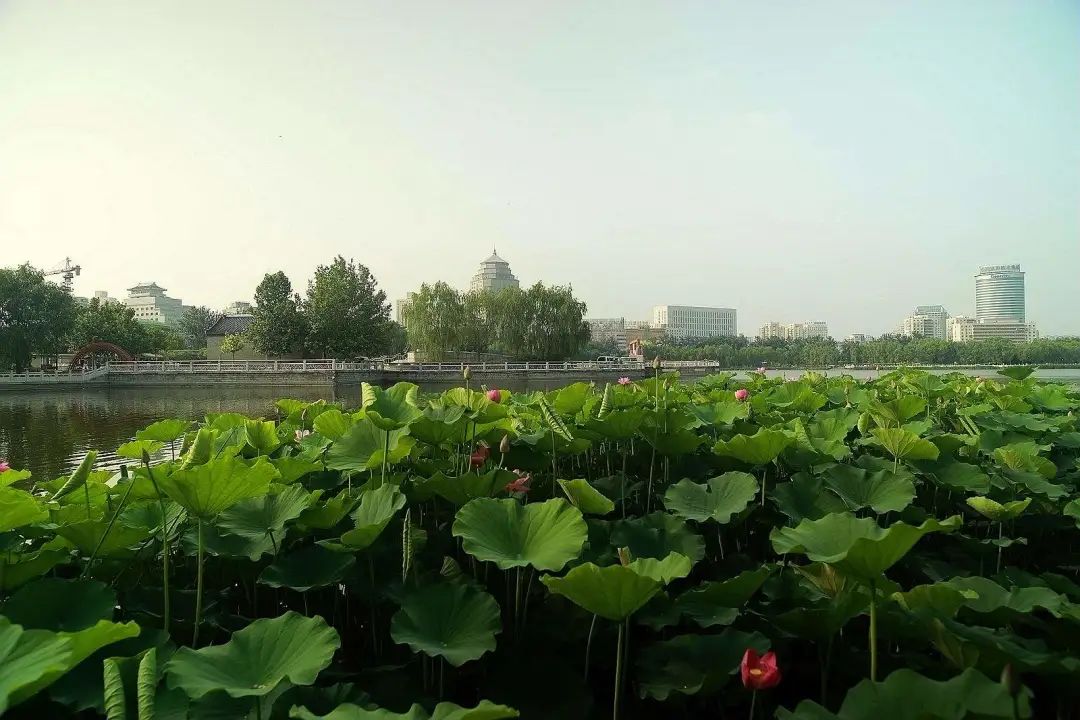 到了夏天,游人便可漫步在九孔桥上,行走在堤岸湖边,观赏水中亭亭的荷花,嗅闻沁人心脾的清香。
