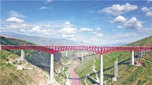 大理至瑞丽铁路怒江桥主拱跨径490米,是世界第一大跨度的铁路钢桁拱桥,已于2019年12月合龙。