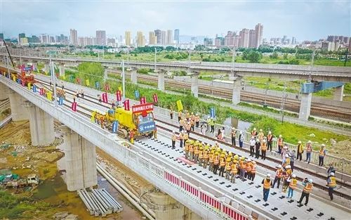 据了解,中铁四局集团公司连徐Ⅰ标承担正线铺轨362.19公里,其中无砟轨道铺轨298.13公里,站线铺轨32.24公里,新铺道岔91组等施工任务。