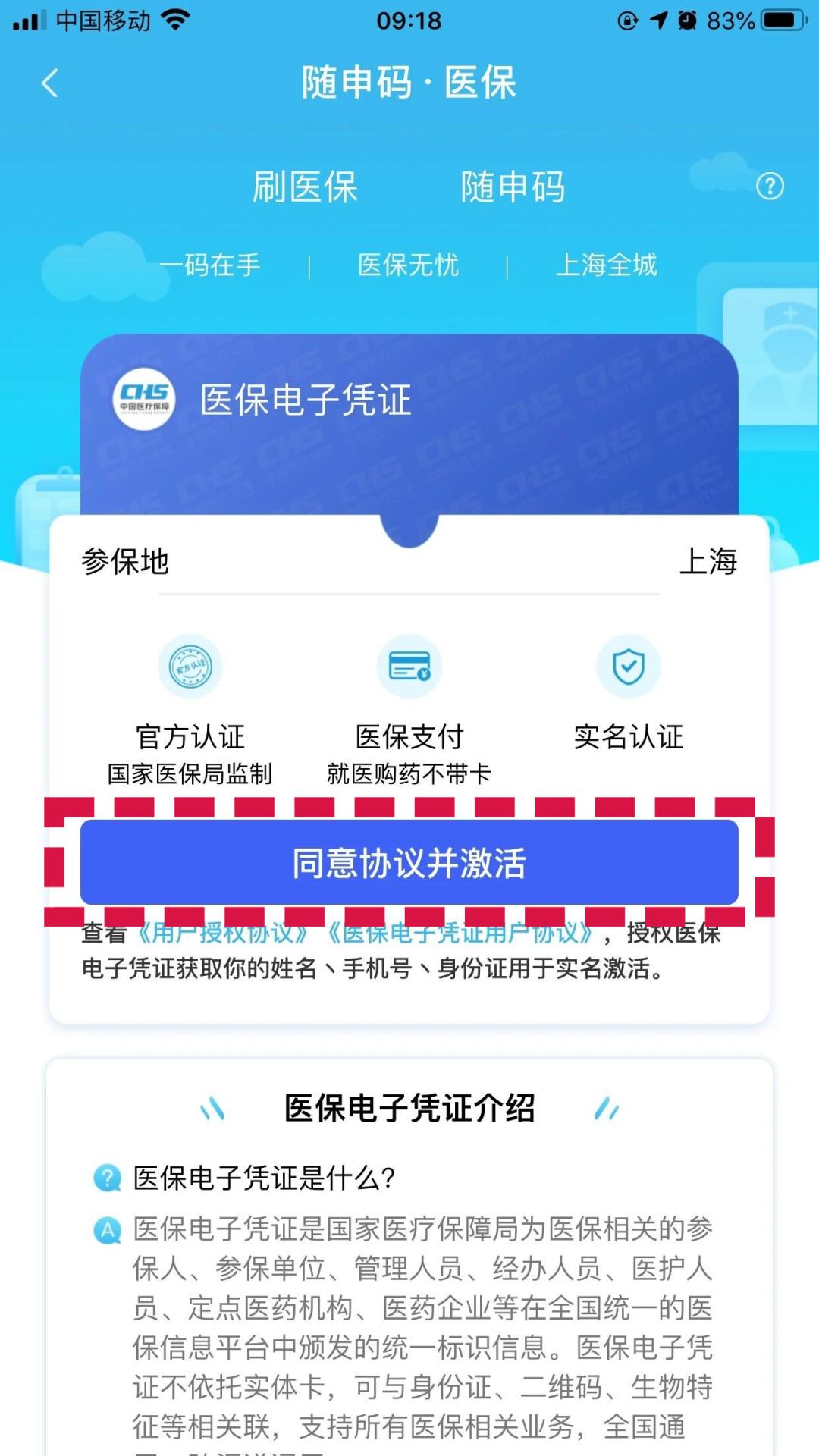 上海医保用户首次使用时需要完成激活,完成协议确认、刷脸、信息确认即可激活医保电子凭证。