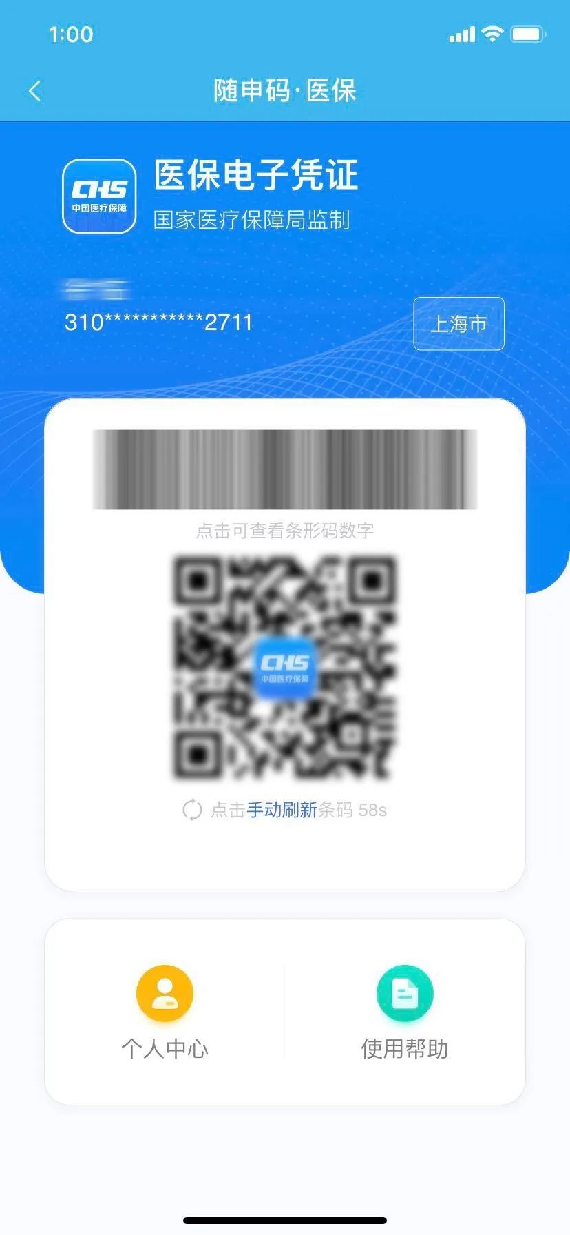 3) 向工作人员出示“医保电子凭证”二维码与条形码,即可进行医保就医。