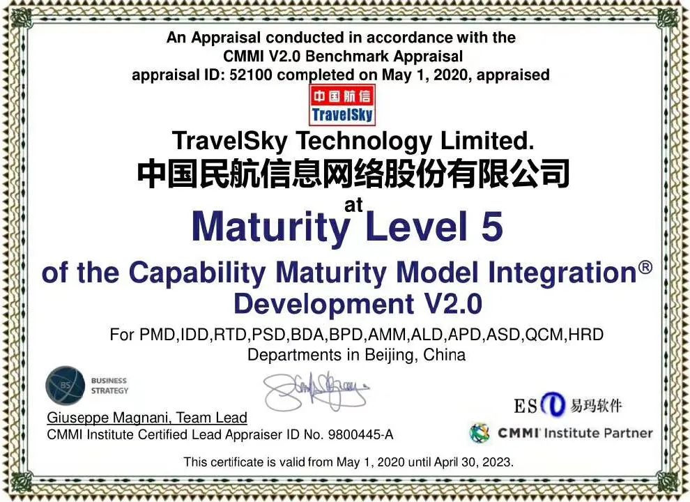 近日,研发中心代表公司完成CMMI V2.0五级正式评估,中国航信成为国内十余家通过这一最新最高级别评估的企业之一,同时也成为国内交通运输业首家通过CMMI2.0版本最高等级——成熟度五级的认证企业。