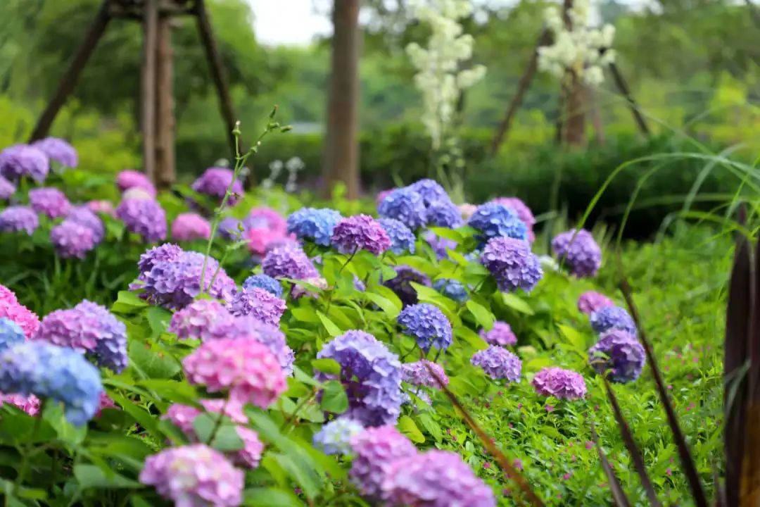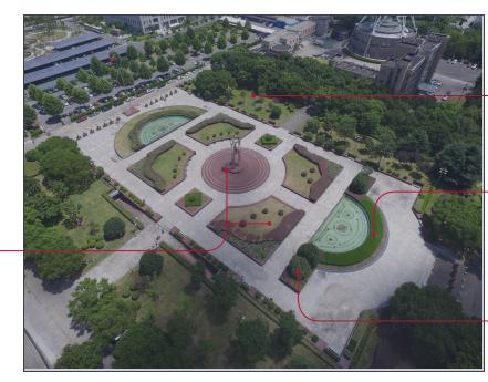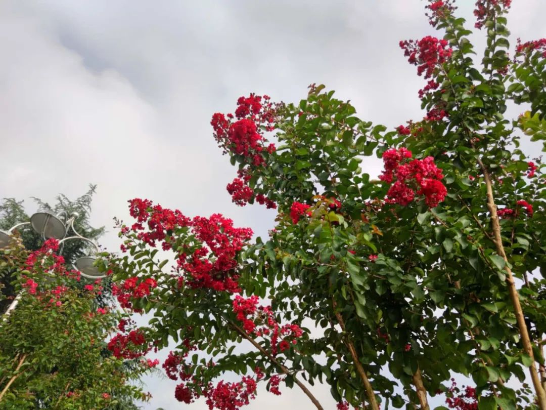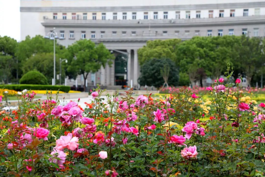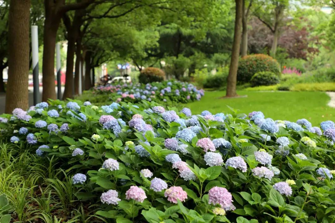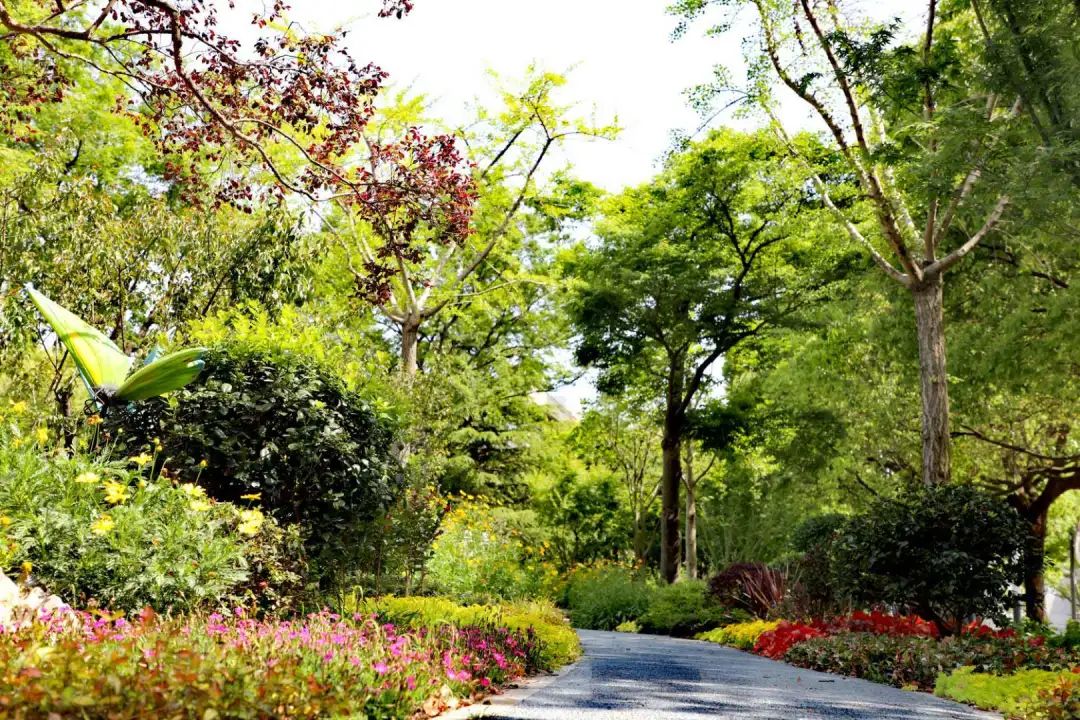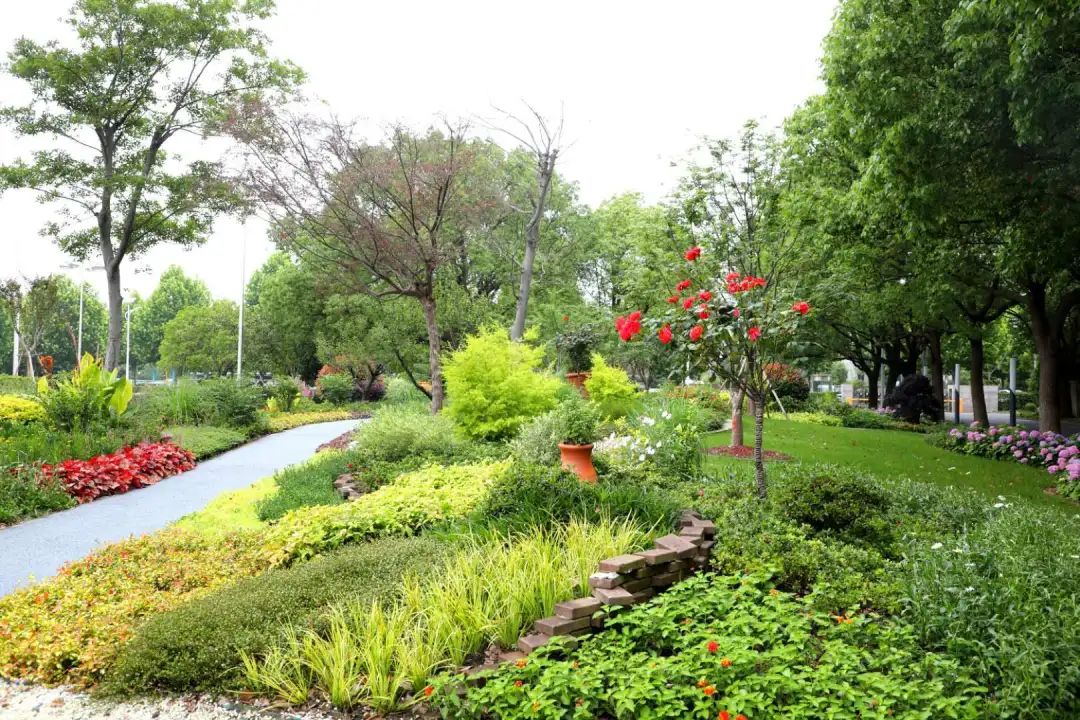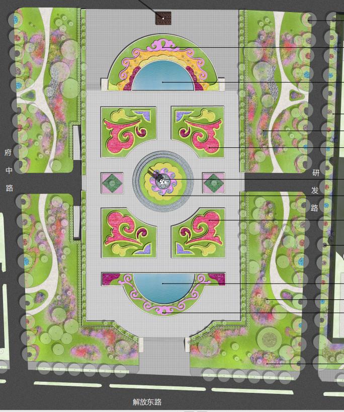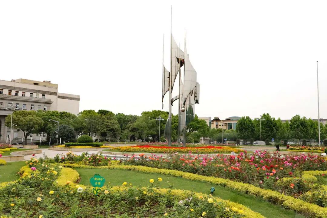 原广场内植物色彩以常绿为主,色彩单调,以“贤城祥云·四时如意”为理念进行景观优化提升,重点引入多个品种的红梅、月季、杜鹃和八仙花等观花植物,凸显花坛和绿地的特色,体现大气自然、和谐精致的风貌。