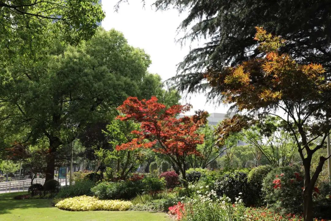 为进一步优化城市公共空间绿化景观,给市民提供一个更精致、精美的生态休憩环境,2019年将原有区政府时代广场改造为共享广场,增加游憩及休憩设施,成为解放东路绿化特色街区的活动中心。
