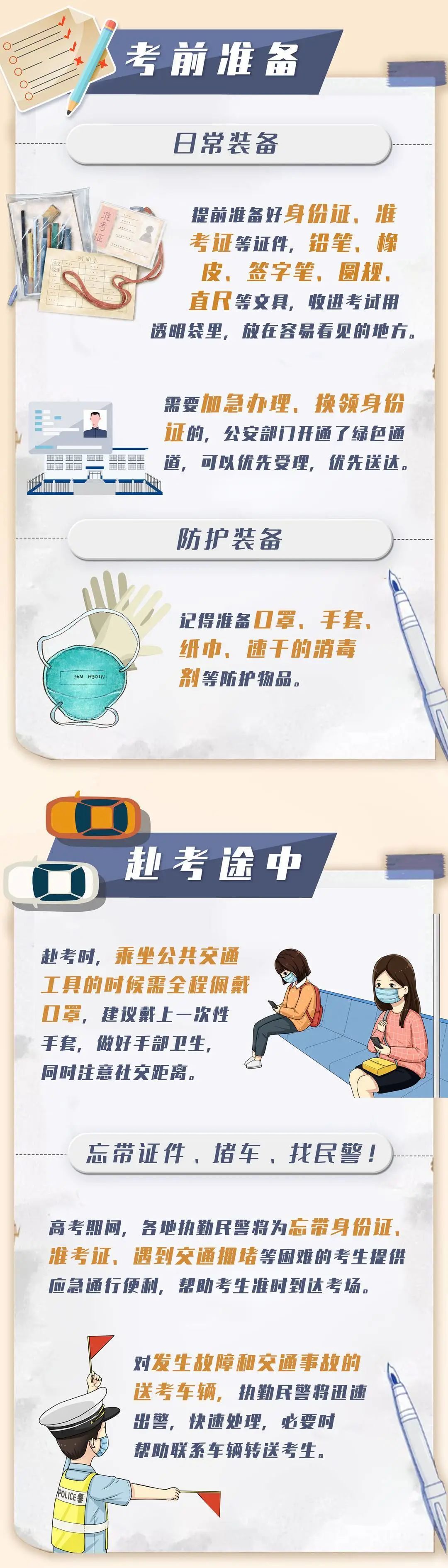 届时,请广大市民出行时,注意路口交通指示标志并服从现场交警指挥,如遇高考和高中学业水平选择性考试工作车辆,请自觉礼让;请广大市民在上述区域暂停一切可能制造噪音的活动,为十年寒窗的莘莘学子考出水平创造良好环境。因通告事项给您造成的不便之处,敬请谅解。