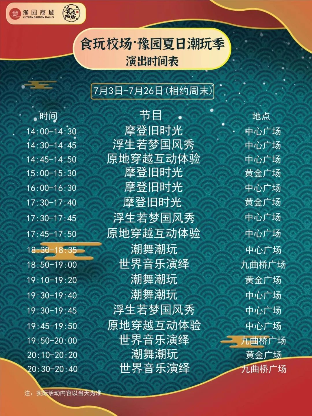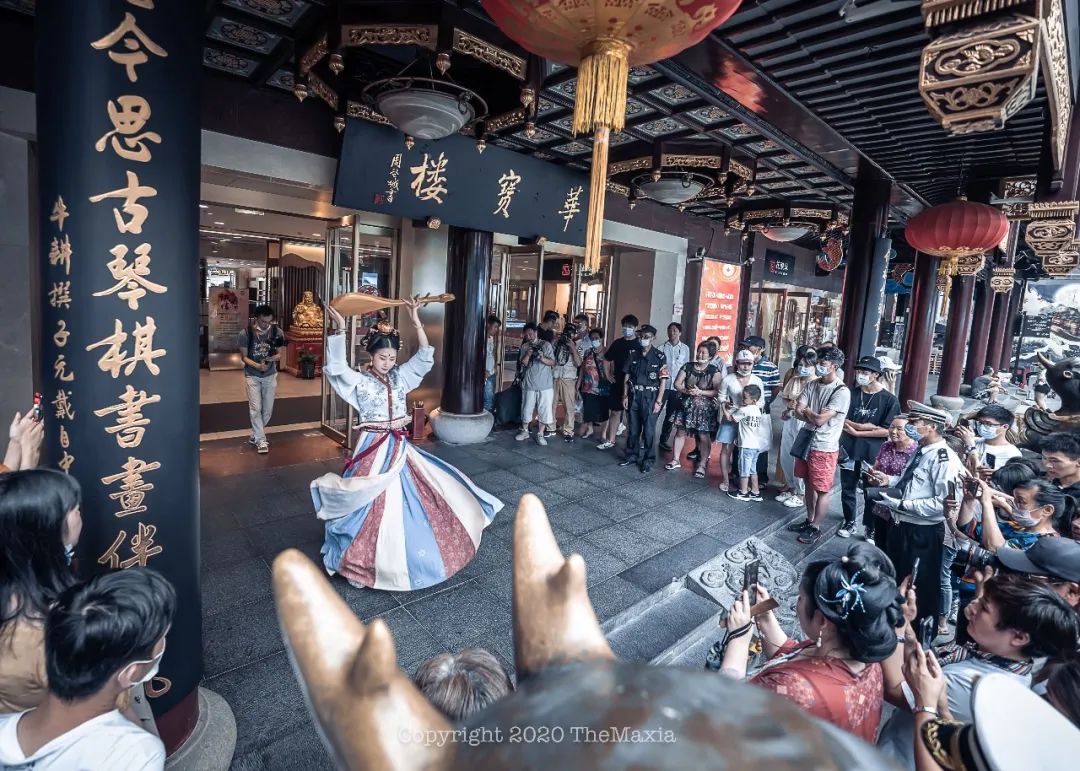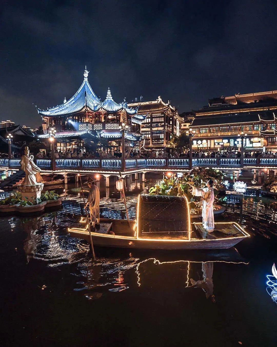 每到周末,豫园都安排了丰富多样的体验和国潮节目,并根据观众反响定期替换。非双休日则保留了“九曲船秀”等豫园1.0版夜市经典项目。