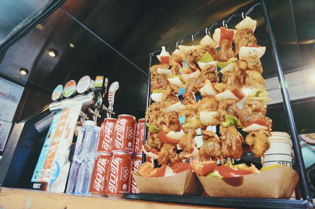 白熊啤酒带来三款经典精酿。推荐女孩子们比利时水果啤酒“乐蔓莓果”,酒精度只有3.8度,稀释烤串的油膩。PS,这里的鸡肉烤串肉质紧实,一定要配洋葱和青椒,入口才够味儿!