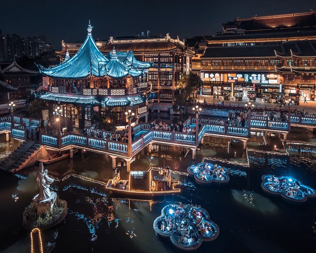豫园的三大明清式街区广场,串联广场的街巷,还有高空区域,悉数在夜间开放。非遗千灯、定制美食集群、次元IP集市以及情景互动游艺,重新演绎了上海的另一种“魔”性。
