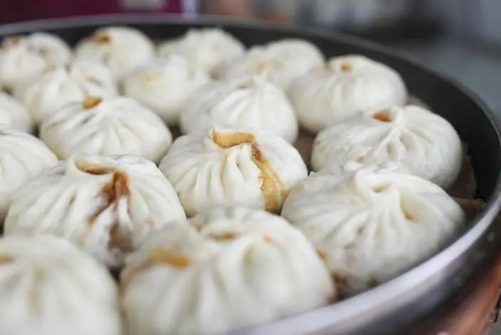 蒸气热力下,每10分钟出炉一轮,老板徐文斌手脚敏捷,豆腐包按顺序从蒸炉到排队的人们手中,分毫不差。