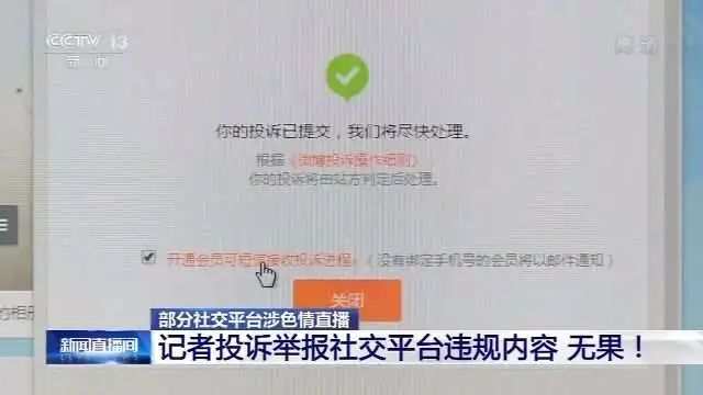 我国《互联网直播服务管理规定》第19条规定,互联网直播服务提供者应当自觉接受社会监督,健全社会投诉举报渠道,设置便捷的投诉举报入口,必须及时处理公众投诉举报。但相关平台是否履行了监管责任呢?记者随后对某些社交平台的违规内容进行了投诉,结果如何呢?