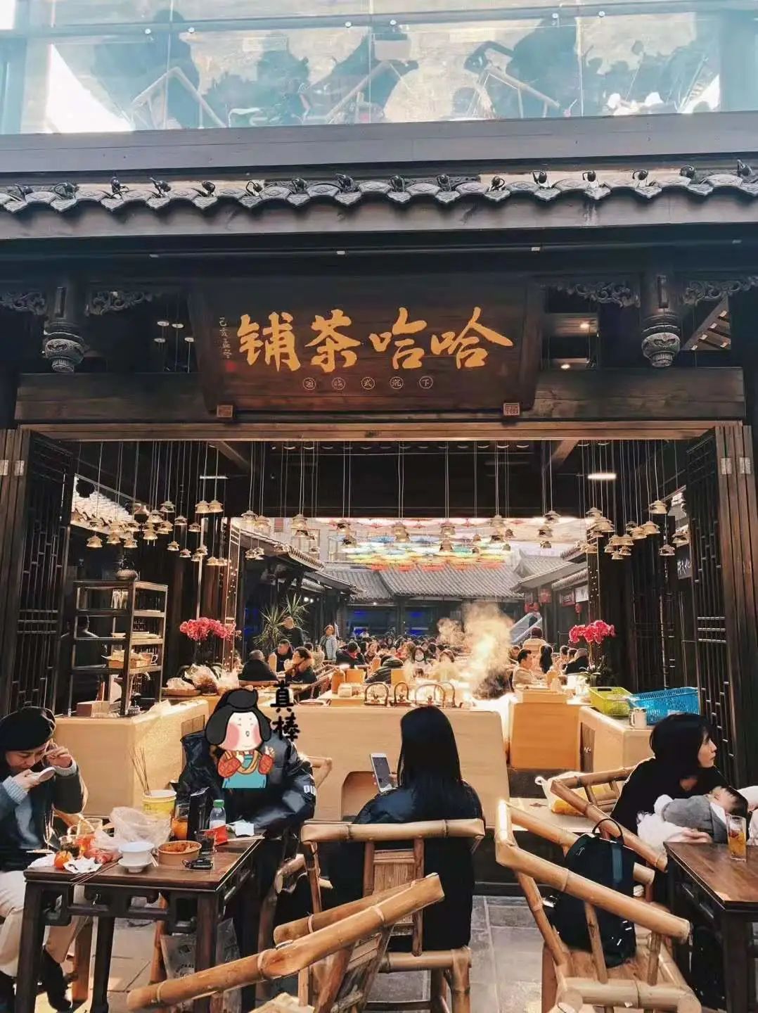 你还可换个地方喝茶,于是你拾阶而下,就直接去到下沉式的天井里,这里有家名叫“哈哈茶铺”的茶肆。