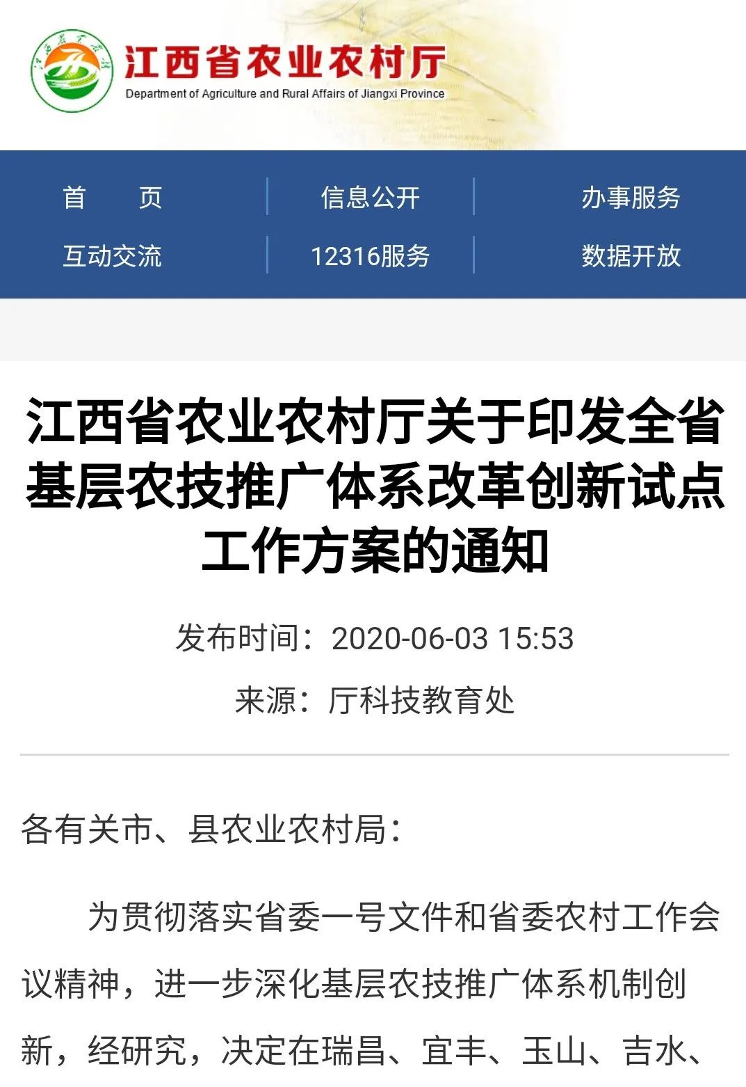 7月5日,记者从省农业农村厅获悉,为进一步深化基层农技推广体系机制创新,激发农技人员工作活力,提升农技推广服务效能,江西决定在瑞昌、宜丰、玉山、吉水、崇仁五县(市)开展基层农技推广体系改革创新试点。