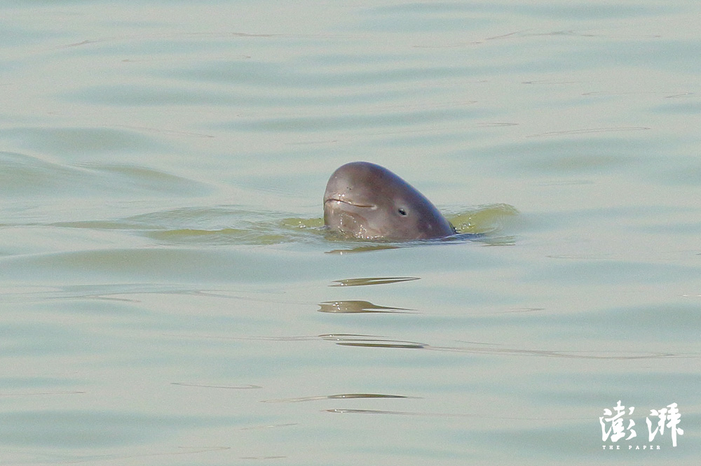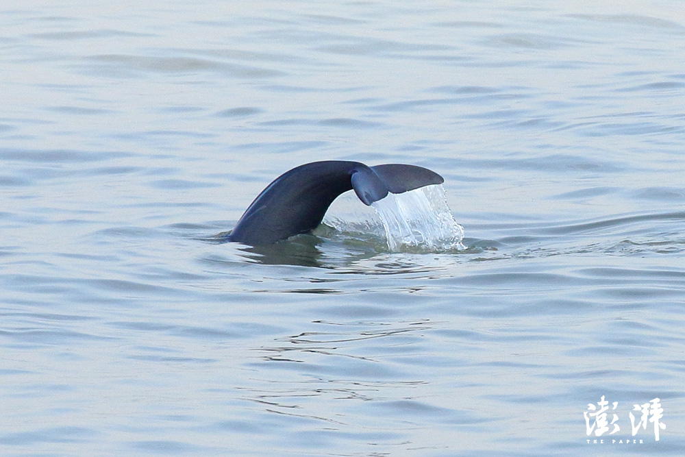 长江江豚。江豚跃起又入水,尾部甩出漂亮的水花。本文图均为 作者 供图