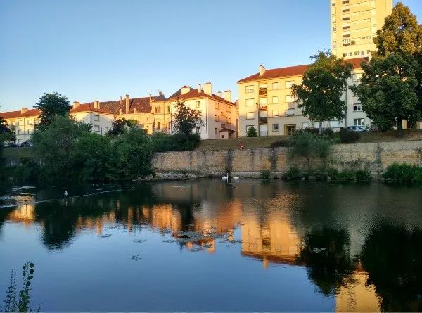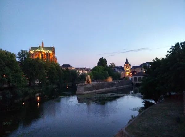 一个傍晚,到达法国梅斯小镇。一条笔直的,堤岸规整的小河,将小镇一分为二。夕阳将岸边的房屋染成一片金色,倒映在平静的河面,河面泛出一片耀眼的金波。金波之上,有一群欢乐的野鸭追逐戏水,几只高贵的白天鹅交颈缠绵切切私语。