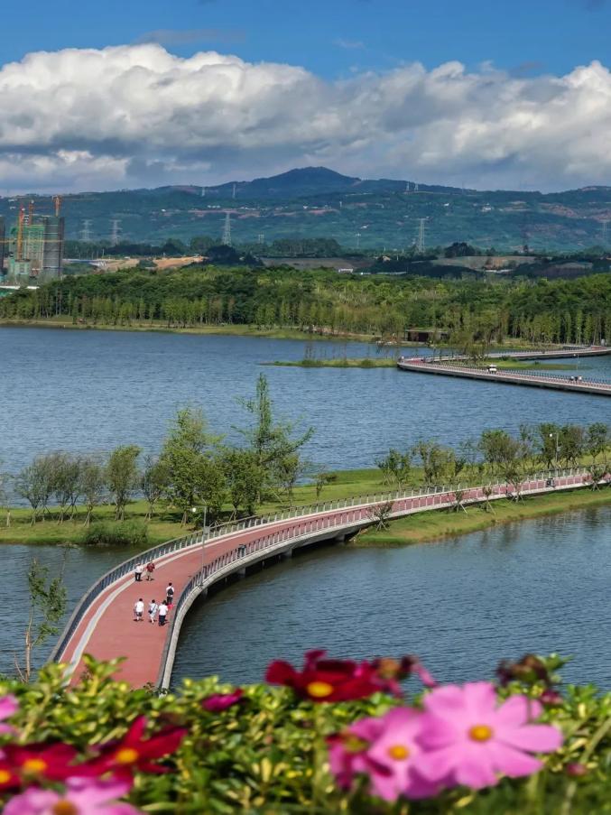 从平原到山峦,从城市之心到城市之眼,我们的城市正在一条条绿色“缎带”的包裹中蜕变,完成着建设践行新发展理念的公园城市示范区的实践。