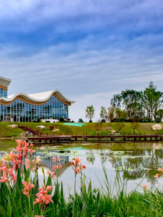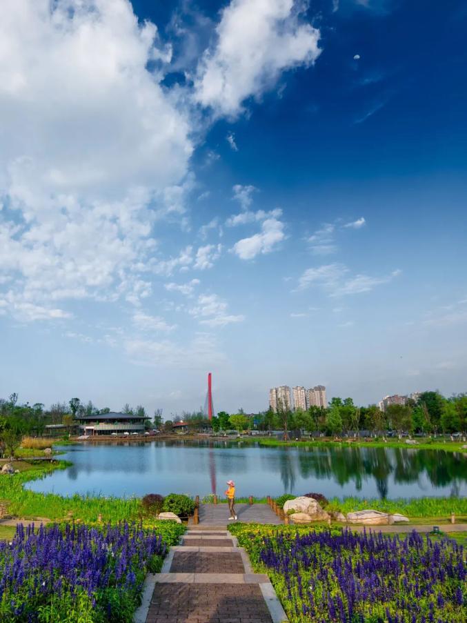 江家艺苑以田园为纸,以草木为绘,池渊为墨,组合浅丘、森林、田园、湖泊、池塘、花海等景观,充分融合了时尚、艺术与文化等元素,在绿道建筑中描摹出“创新创造、优雅时尚、乐观包容、友善公益”的天府文化,承托起成都人对绿色的期待与对生活的热爱。