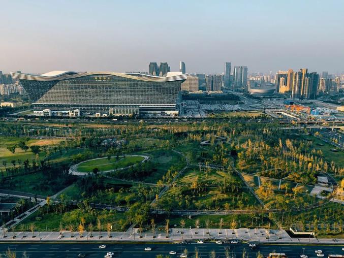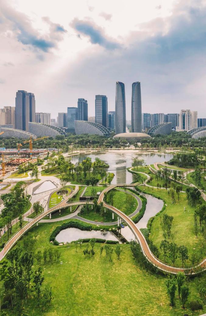 作为城市核心商务区的现代化生态艺术公园,交子公园以生态为底,金融文化为依,一展公园城市新风采。