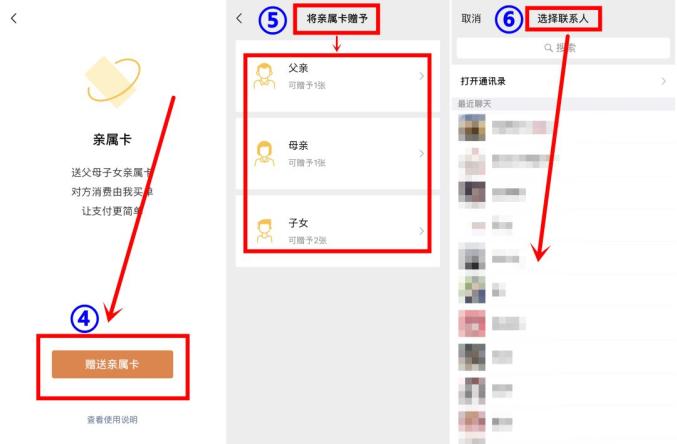 操作步骤:打开微信【我】——【钱包】——选择【亲属卡】——点击【赠送亲属卡】——选择赠予类别和人即可。