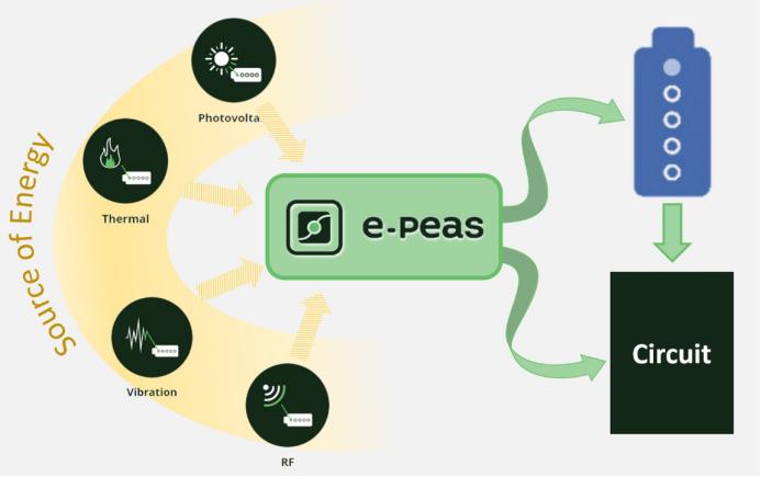 E-peas半导体公司日前发布了其首款芯片,这是一款用于光伏和热电能量采集的能量管理IC。该公司成立于2014年,致力通过提高采集能量转化率及降低电路区块能量消耗以解决物联网应用问题。此外,E-peas 还供应基于 ARM 的微型控制器。