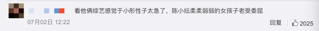 “陈小纭独自美丽吧,于小彤脾气太大了,女孩老受委屈。”